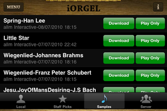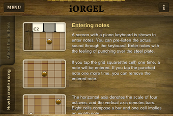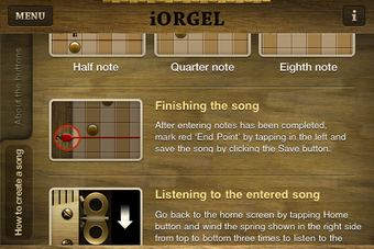 Om met iOrgel een liedje af te spelen, moet je er wel eerst een componeren. Dit doe je in een scherm met een piano keyboard, waar je met je vingers noten 'tapt.' Het is even wennen aan de bediening, want de vierkantjes zijn zo klein dat je er vaak naast zit. Als je meer uitleg nodig hebt, geeft iOrgel deze gelukkig via de Help-knop in het hoofdmenu. Hiervandaan speel je de liedjes ook af: zo luister je niet alleen naar je eigen composities, maar download je ook deuntjes die andere iOrgel-gebruikers met de wereld delen.