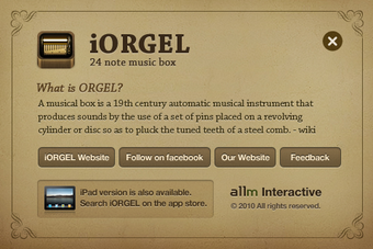 De naam iOrgel is wellicht verwarrend. Het gaat hier toch echt om een speeldoos; schijnbaar heten de muziekboxjes in Korea, waar de makers van de app vandaan komen, op z'n Nederlands 'orgel'. Zodra je in iOrgel echter op 'New' drukt om het instrument weer te geven, herken je meteen de constructie van de schattige opwindbare doosjes: een mooie opwindbare trommel met pinnetjes staat vlak boven een kam met metalen staafjes.